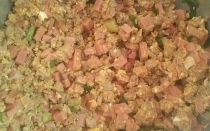 Corte a mortadela em cubinhos e incorpore a carne já pronta (sem desligar o fogo).